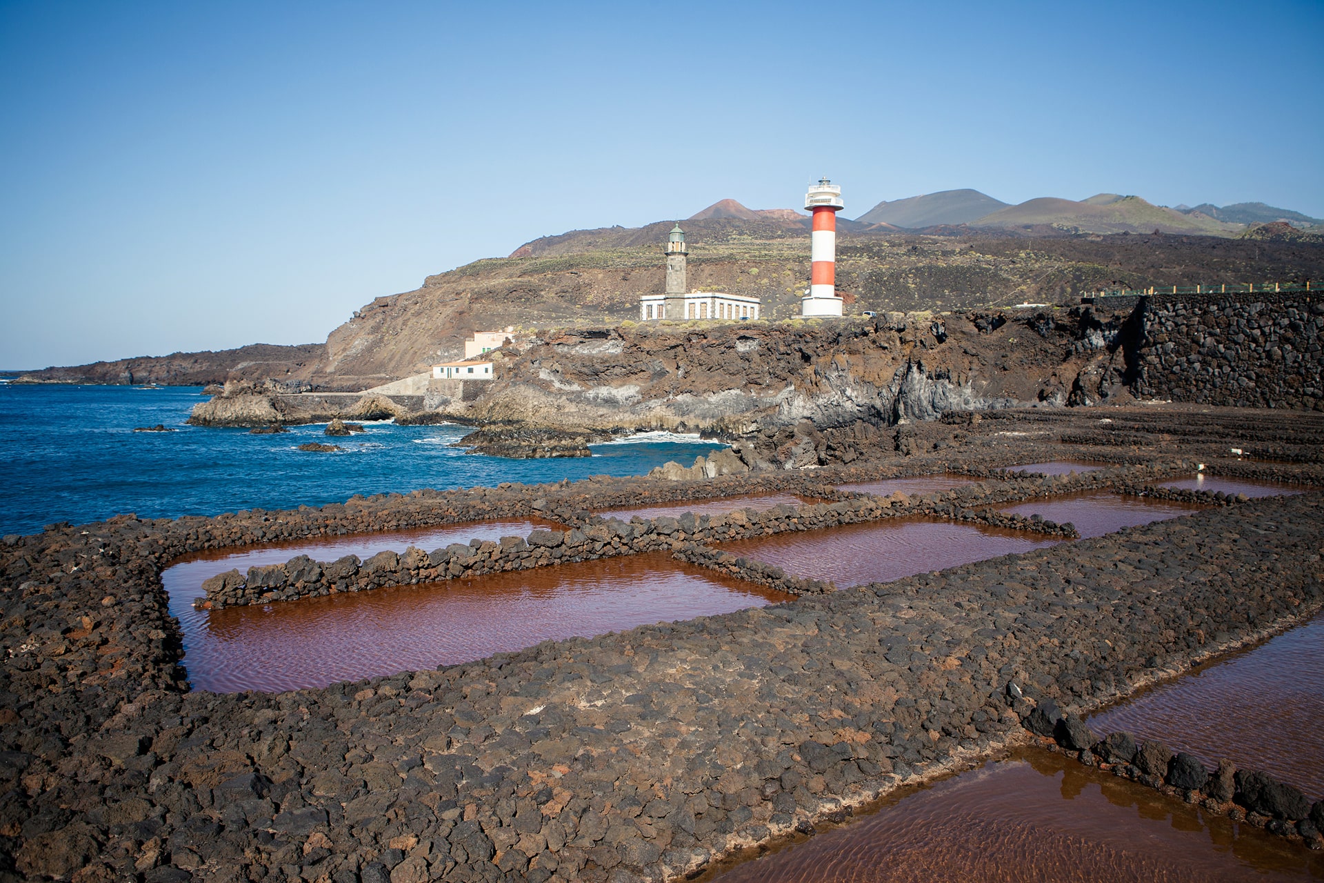 Na południowym krańcu wyspy stoją dwie latarnie morskie, w pobliżu Salinas de Fuencaliente. Te tradycyjne solniska wciąż działają, produkując ręcznie zbieraną sól morską o wyjątkowym smaku. Miejsce to jest rajem dla fotografów, zwłaszcza o zachodzie słońca, gdy biały sól kontrastuje z czarną lawą i różowymi odbiciami w basenach.